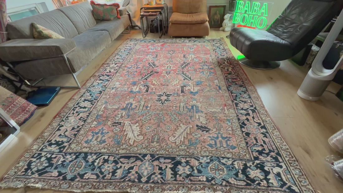 Vintage handgeknoopt tapijt in Heriz-stijl – ca. 290 × 212 cm gemaakt ca. 1940-1950Vintage handgeknoopt tapijt in Heriz-stijl – ca. 290 × 212 cm gemaakt ca. 1940-1950