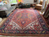 Ein wunderschöner großer Teppich mit einem kraftvollen geometrischen Muster im klassischen Heriz-Design. Dieser handgeknüpfte Teppich verbindet tiefe Rottöne, Marineblau, Ockergelb und Elfenbeinweiß zu einem reichen und lebendigen Gesamtbild. Die Details sind liebevoll ausgearbeitet und verleihen dem Teppich Charakter und Dynamik.