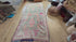 De sleetse patina, de subtiele kleurvervaging en de lichte oneffenheden vertellen het verhaal van een kleed dat tientallen jaren in gebruik is geweest. Dat maakt het juist zo geliefd: het voelt warm, zacht en authentiek, een stuk dat direct karakter toevoegt aan elke ruimte. Door de lengte werkt het prachtig als loper of als langwerpig statement in een woonkamer, slaapkamer of creatieve studio.