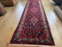 Esta alfombra corredor anudada a mano de Persia Occidental destaca por su paleta de colores vibrantes en azul oscuro, carmesí, marfil, coral, verde suave y acentos en naranja, rosa y negro. El patrón está simétricamente construido alrededor de tres medallones geométricos con motivos florales y enredaderas sinuosas.