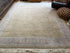 Het kleed combineert een effen beige veld met een sierlijke uitgesneden (carved) rand in zachte pasteltinten van poederroze, taupe en crème.