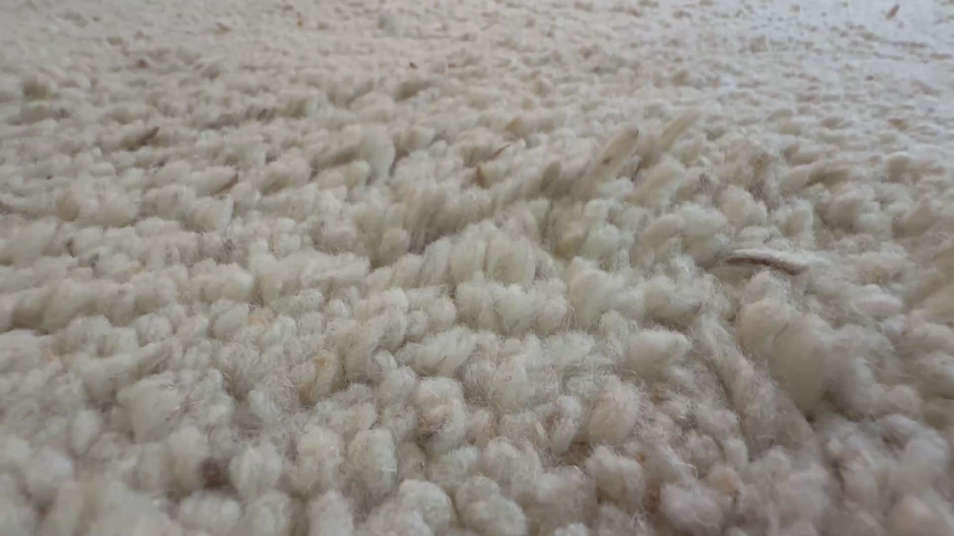 Een prachtig handgeknoopt Berber-tapijt van 100% zuivere scheerwol met een natuurlijke ivoorwitte kleur en heerlijk zachte pool.