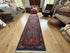 Een prachtige, handgeknoopte loper met klassieke symmetrie en subtiele patronen in rood, blauw, oker en crème.
