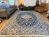 Estilo Nain – campo creme quente com medalhão clássico e acentos azul noite. Finamente nó e padrão elegante.